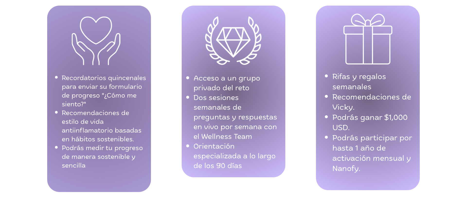 • Recomendaciones alineadas a hábitos antiinflamatorios.